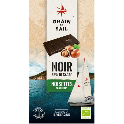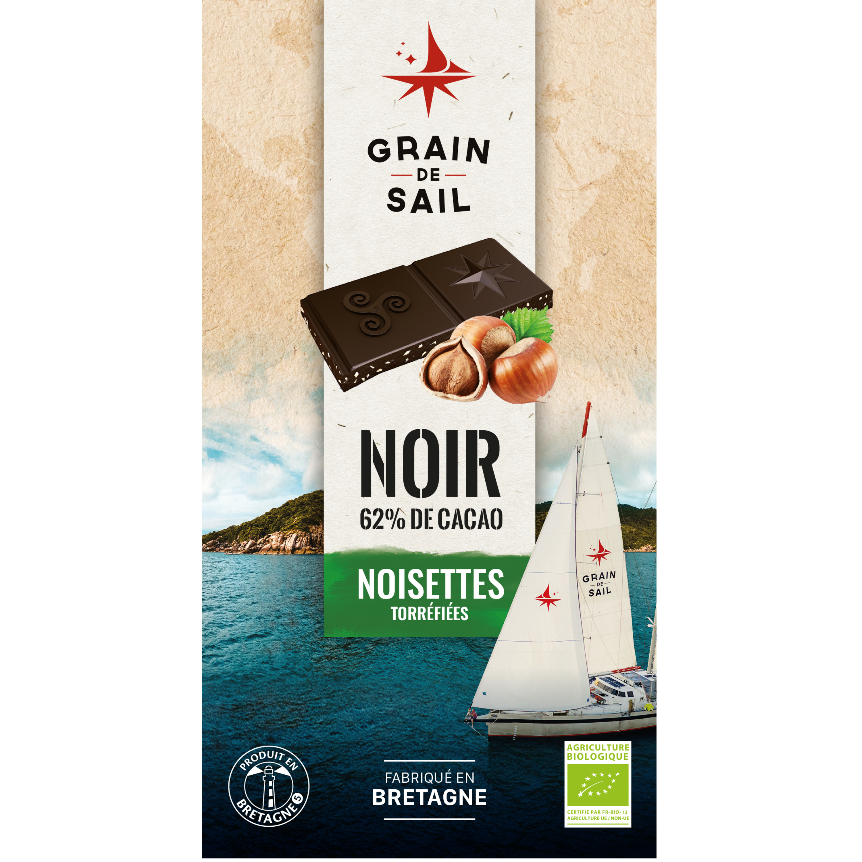 Tablette de chocolat Noir 62% de cacao avec inclusions de noisettes torréfiées - 100gr - FR BIO 13 - Grain de Sail