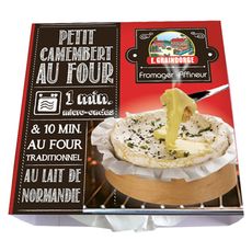 Ce Petit Camembert à cuire est idéal pour les repas en famille ou les apéros entre amis. Prêts à l'emploi grâce à son conditionnement (papier sulfurisé + cercle en bois) et sa recette spécifiquement étudiée pour une fonte rapide de la pâte (1minute au micro onde et 10 minutes au four), il sera le partenaire incontournable de vos soirées d'hiver. PETIT CAMEMBERT AU FOUR 120G E. GRAINDORGE 23% MG/PF