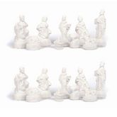 2 sachets de 9 santons de la crèche de Noël : ces petits personnages de la tradition chrétienne représentant Marie, Joseph, le petit Jésus, un âne, un bœuf, les 3 mages et un mouton