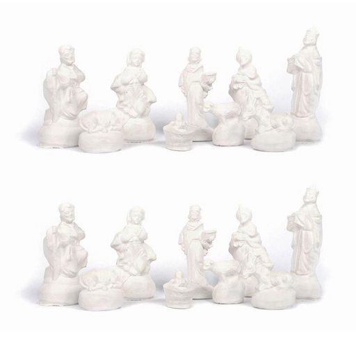 2 kits de 9 moules en silicone santons de la crèche de Noël : ces petits personnages de la tradition chrétienne représentant Marie, Joseph, le petit Jésus, un âne, un bœuf, les 3 mages et un mouton. Les figurines en plâtre réalisées sont à peindre et à décorer. Ces moules à plâtre flexibles peuvent également être utilisés pour la fabrication de bougies DIY. Notez cependant qu'il n'y a pas d'espace pour insérer une mèche. Dimension des moules en latex : 3 à 11 cm.
