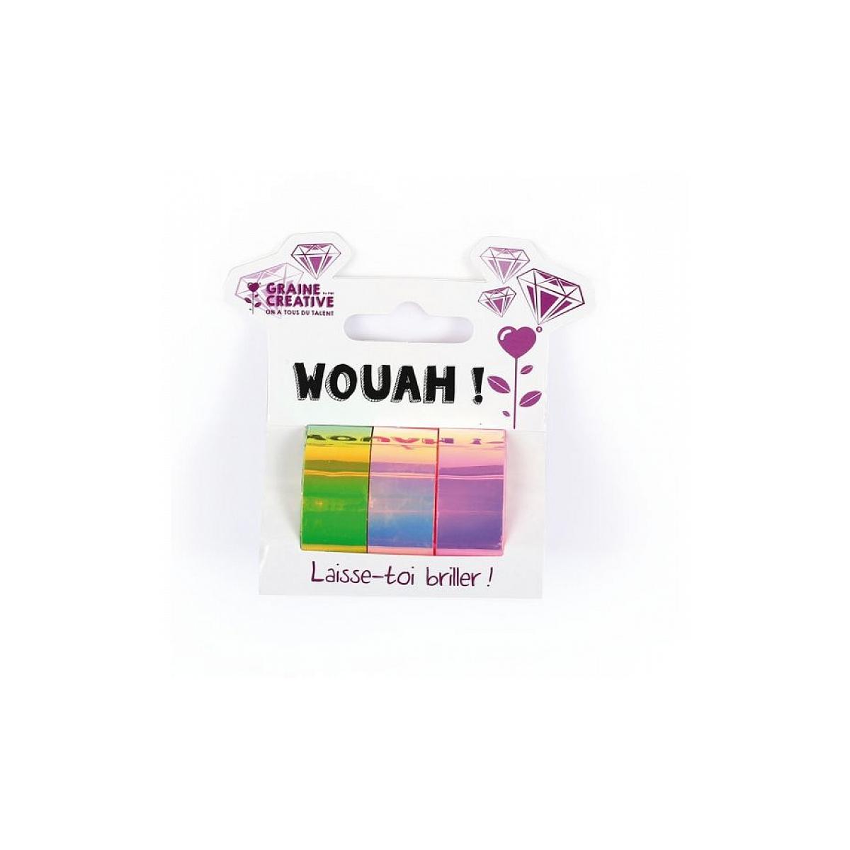 Lot de 3 scotchs décoratifs Miroir irisé Jaune/Orange/rose mesurant 15 mm x 5 m environ