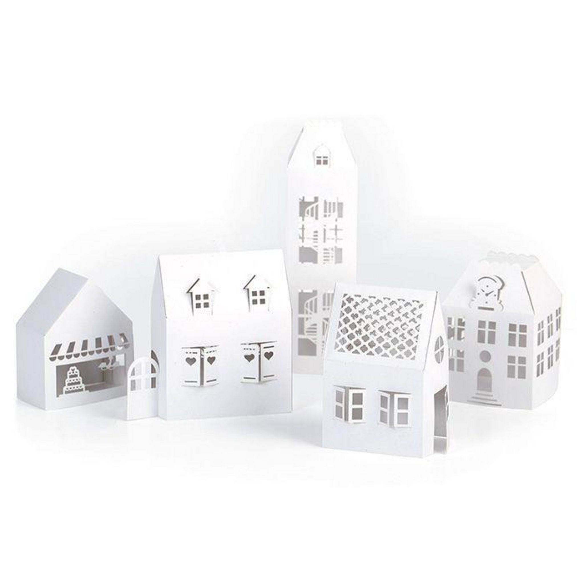 5 petites maisons blanches en carton à monter soi-même pour retrouver toute la magie de Noël dans votre maison, pendant les fêtes de fin d'année!
