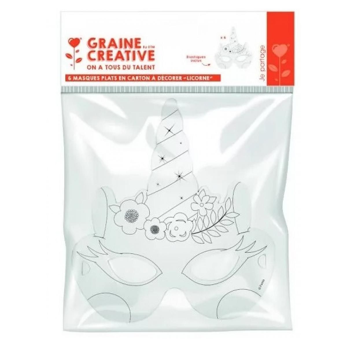 6 masques plats en carton a decorer theme licorne elastiques fournis