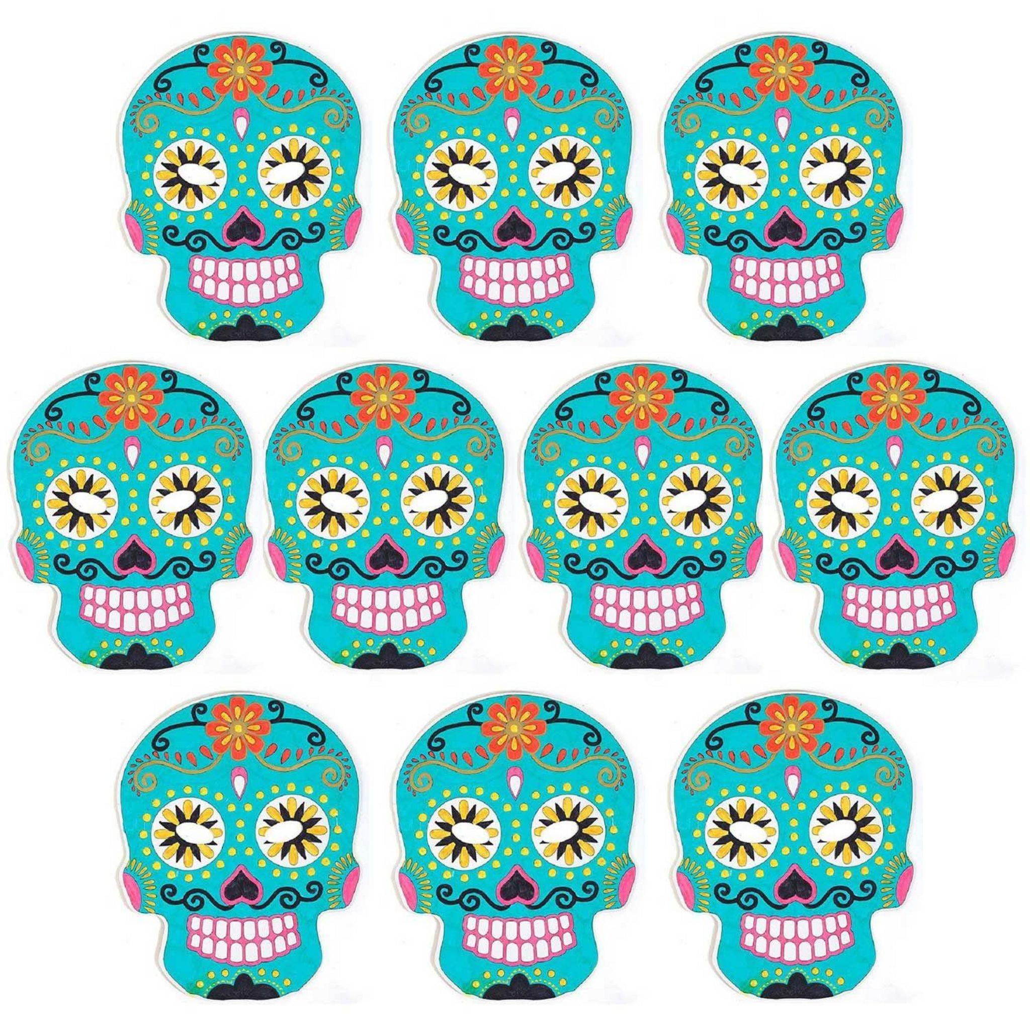 60 masques plats en carton à colorier - Calavera mexicaine