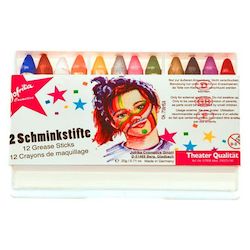 Petite boite de 12 crayons gras pour le maquillage du visage. Idéal pour carnaval, Halloween, ou vos soirées déguisées et soirées de match.