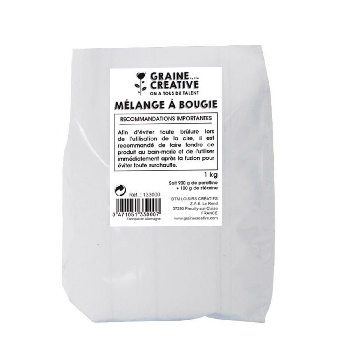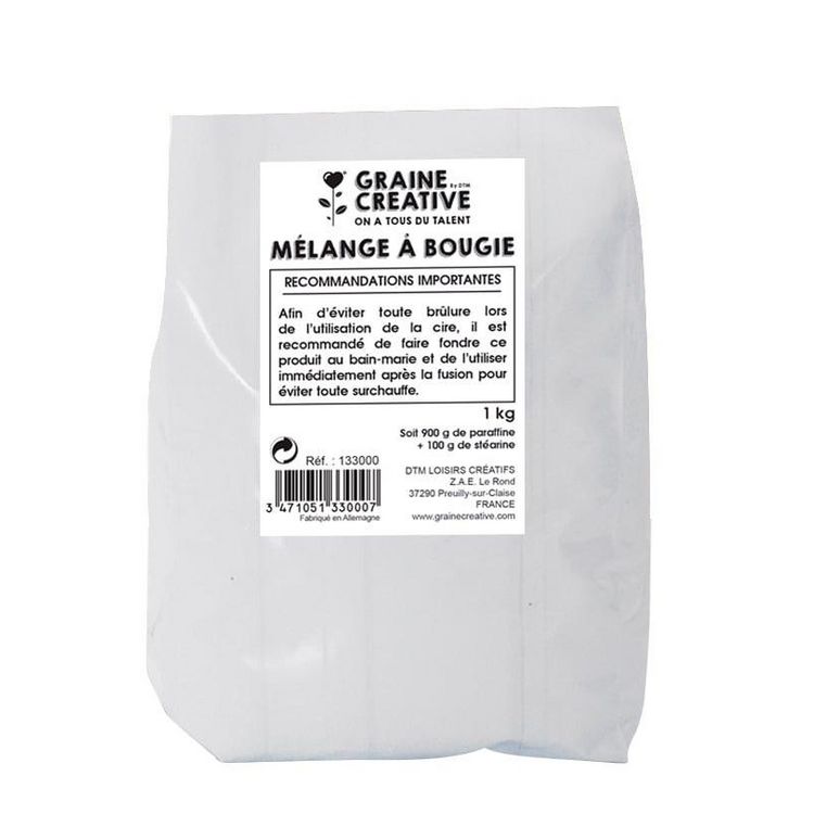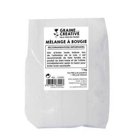 Cette cire à bougie est à faire fondre au bain-marie. Vous pourrez créer vous-mêmes vos bougies originales en la versant dans un moule, et en ajoutant des colorants et des parfums spéciaux pour bougies. Ce mélange de cire à bougie prête à l'emploi est composé de paraffine et de stéarine.