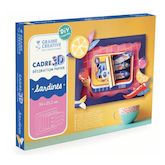 Coffret créatif pour créer un tableau 3d sur le thème des sardines. contient: 9 planches de papier imprimées et prédécoupées 2 planches de stickers mousse adhésives double face 1 rouleau adhésif double face 1 notice la boîte sert de cadre