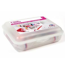 Ce coffret initiation contient 12 pains de pâte à modeler de 57 g à cuir au four, ainsi les accessoires pour la travailler.Le kit contient :10 pains de pâte à modeler Soft de 57 g,2 pains de pâte à modeler Effect de 57 g,3 emporte-pièces ronds de diamètres différents,1 plaque de texture (2 motifs),1 rouleau à pâte polymère, 1 tapis de modelage,Une spatule,1 vernis brillant.Vous pouvez cuire la pâte polymère au four pendant 30 minutes à une température de 110°C.
