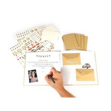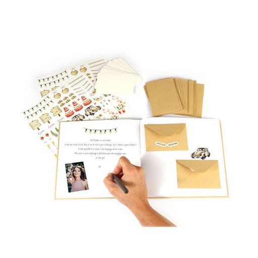 Grâce à ce coffret, célébrez les moments importants de votre vie, dont votre mariage! Vous pourrez personnaliser un livre d'or et le rendre unique! Les invités pourront ainsi laisser un message souvenir de ce grand jour et même accrocher quelques photos souvenirs. Sur la couverture de l'album, un espace libre vous permettra d'écrire vos prénoms ainsi que la date de votre évènement. Contenu du coffret : 1 album 20 x 20 cm en Kraft et or composé de 80 pages blanches 150 gr, 40 enveloppes kraft 10 x 7 cm avec 40 cartes blanches 150 gr, 2 planches de stickers 20 x 20 cm 1 masking tape 1,5 x 3 m