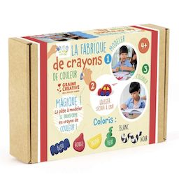 Ce coffret vous fera découvrir la pâte à modeler magique qui se transforme en crayon de couleur. Il suffit de modeler la forme que l'on souhaite et de laisser sécher pour obtenir un drôle de crayon de couleur. Le coffret contient 6 sachets (rouge, bleu, vert, jaune, blanc et noir), 1 mode d'emploi,