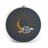 Qui a dit que la broderie c'était juste pour les mamies ? Réalisez facilement une jolie broderie décorative avec ce kit DIY complet et son livret détaillé pour vous guider pas à pas. Reportez le modèle sur la toile grâce au papier carbone et brodez ! Moment détente DIY garanti ! Contenu : 1 tambour de 25 cm, 1 toile de coton colorée 35 x 35 cm, des échevettes, 1 feuille de papier carbone pour reproduire le motif, 1 aiguille à broder, 1 modèle, 1 livret explicatif illustré. Motif céleste : soleil, lune et nuage.