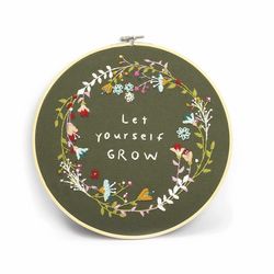 En savoir +Qui a dit que la broderie c'était juste pour les mamies ? Réalisez facilement une jolie broderie décorative avec ce kit DIY complet et son livret détaillé pour vous guider pas à pas. Reportez le modèle sur la toile grâce au papier carbone et brodez ! Moment détente DIY garanti ! Contenu : 1 tambour de 25 cm, 1 toile de coton colorée 35 x 35 cm, des échevettes, 1 feuille de papier carbone pour reproduire le motif, 1 aiguille à broder, 1 modèle, 1 livret explicatif illustré. Motif végétal avec inscription 'Let Yourself Grow'.
