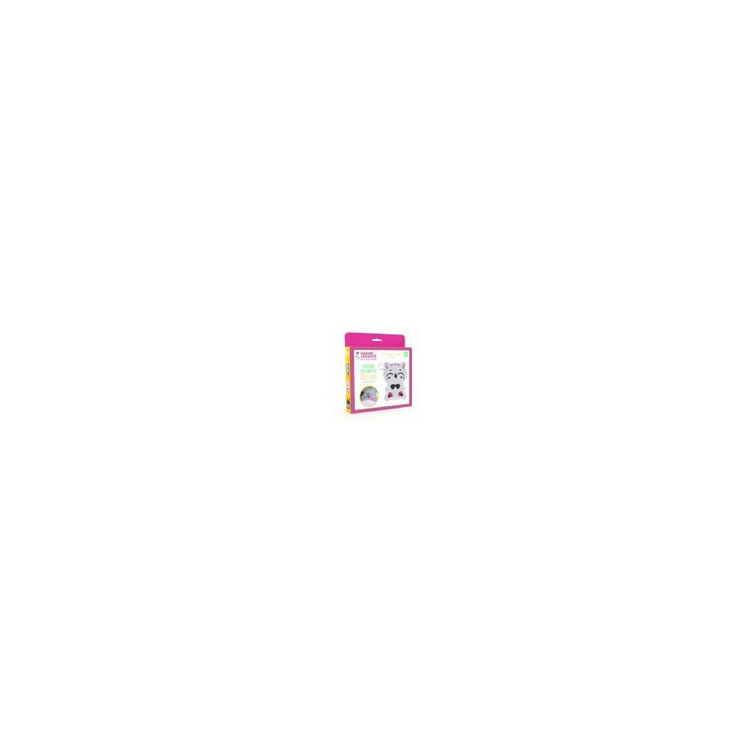Kit de stickers diamant à poser et à coller sur une carte à l'aide de l'outil fourni sur un porte-monnaie monté en porte-clé pour réaliser un chat.
