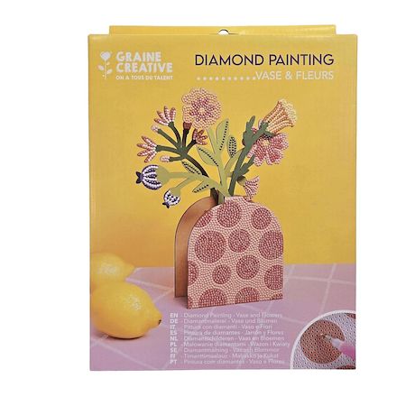 Décorez autrement avec ces vases et bouquets de fleurs à strasser ! À la croisée du DIY décalé et de la déco arty, ce kit revisite le diamond painting dans une version joyeusement kitsch et follement tendance !! contient : support en bois et tout ce qu'il faut pour diamanter