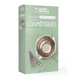 En savoir +Tout le nécessaire pour créer vos cosmétiques maison se trouve dans ce kit : un fouet, un bol avec poignée et un set de 5 cuillères mesures. Fabriquez vous-même votre savon, shampoing ou démaquillant pour maîtriser la composition de vos cosmétiques et passer à la vie version zéro déchet ! Choisissez votre base : glycérine végétale bio, base de savon au beurre de karité, cire d'olive bio en pépites, base de shampooing à l'aloé vera... Vous pouvez ainsi adapter vos cosmétiques maison aux besoins spécifiques de votre peau et de vos cheveux. Vous pouvez aussi choisir vos contenants en fonction de vos usages et de vos envies : pot, pommadier, flacon-pompe...Testez, trouvez les formules qui vous conviennent et créez votre gamme personnalisée de cosmétiques DIY ! Dimensions kit : 10 x 10,5 x 11 cm.
