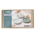 350 g de base JESMONITE 1 moule fabriqué en France 2 pigments de couleur et un nuancier 1 pipette 1 spatule 1 notice illustrée Description Ce kit permet de fabriquer ses propres sous-verres en Jesmonite. Sans solvants et résistante aux chocs, la Jesmonite vous offre une possibilité de création et d'