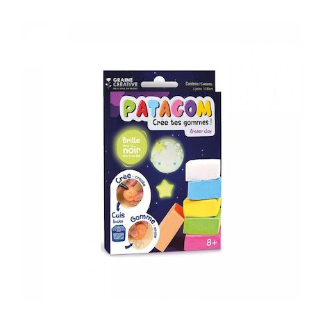 Lot de 6 pâtes à modeler phosphorescentes pour la réalisation de ses propres gommes Patagom! Un pain de pâte fait 25 g