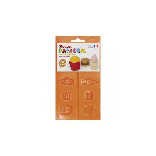 En savoir +Cette plaque thermoformée de 3 moules en deux parties vous permettra de réaliser votre pâte à modeler Patagom sur le thème de la junk food. Hauteur des réalisations entre 2 et 4 cm. Dès 6 ans