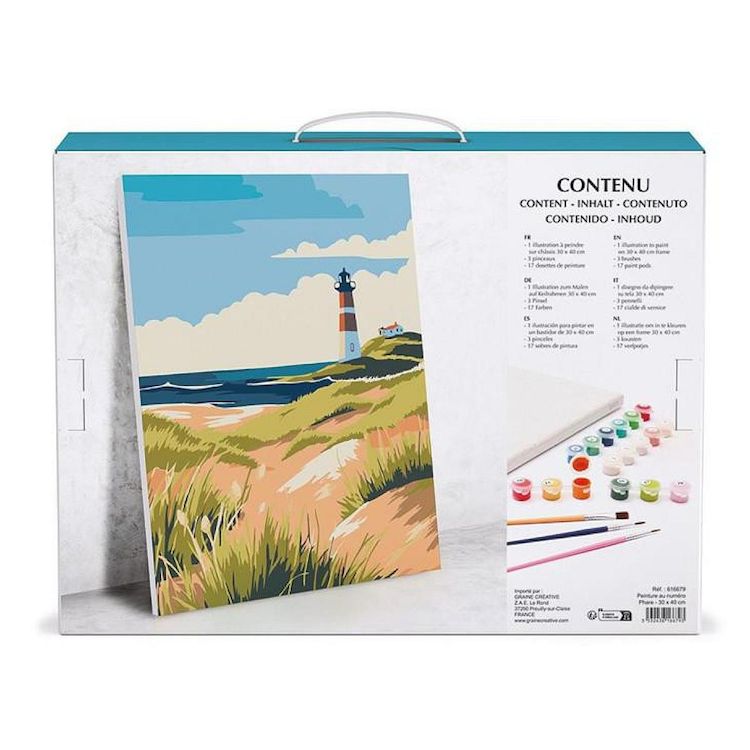 Laissez votre talent artistique s'exprimer avec le merveilleux kit de Peinture au numéro 30x40 cm - Phare de Graine Créative ! Plongez dans l'univers apaisant de la peinture et créez une ?uvre d'art magnifique sans être un expert ! Ce kit contient tout ce dont vous avez besoin pour réaliser un tableau représentant un majestueux phare, avec des couleurs vives et des détails incroyables. Chaque zone est numérotée, et il vous suffit de peindre avec la couleur correspondante pour voir votre chef-d'?uvre prendre vie sous vos pinceaux. C'est une activité relaxante et gratifiante qui développe la patience, la concentration et la précision