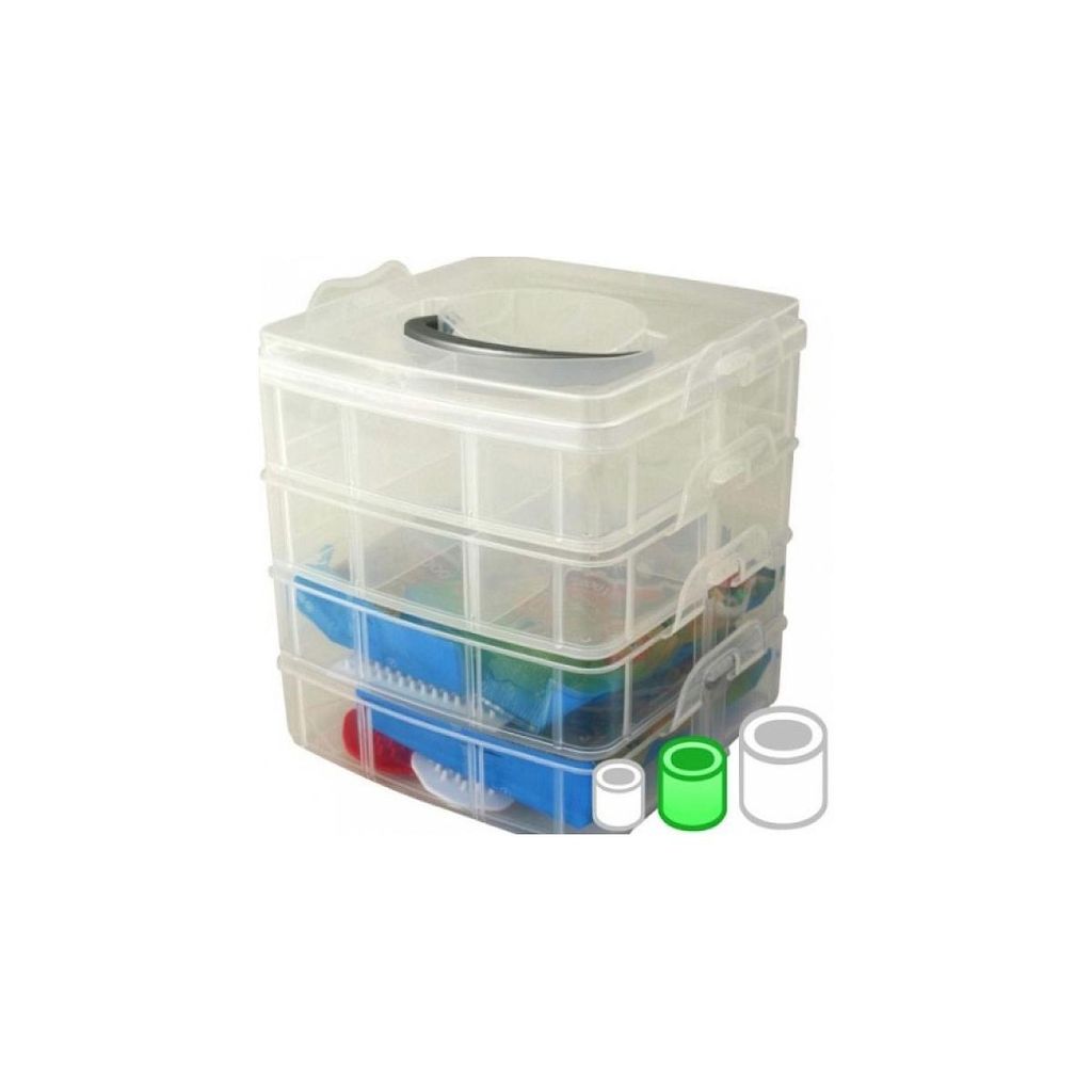 Boite empilable pour ranger toute ces perles Contient : 1 plaque à picots carré, 1 plaque à picots ronde, 1 feuille de repassage, 1 pince, 7000 perles en 12 coloris, 1 boite sur 3 niveaux