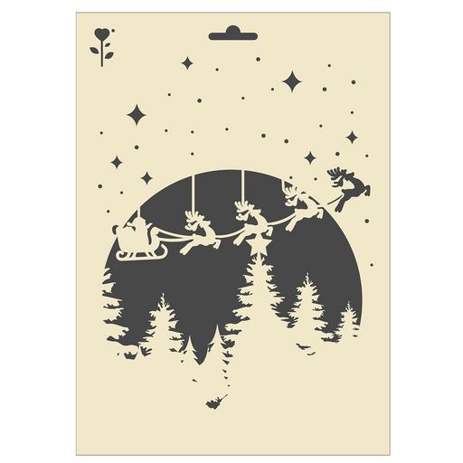 Décorez votre maison aux motifs de Noël avec ce pochoir format A4 fabriqué en France représentant le traineau du père noël en plein vol !