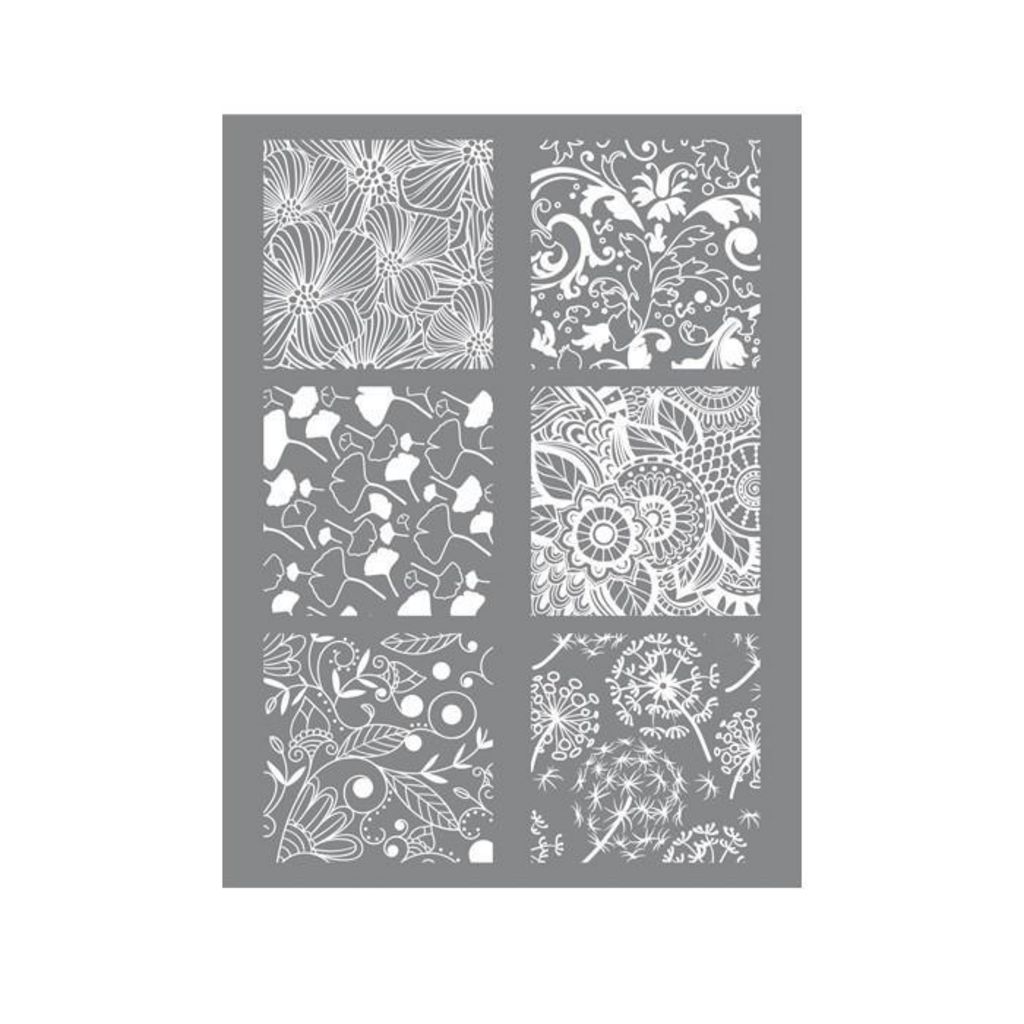 Pochoir réutilisable pour pâte polymère pour customiser vos créations de motifs florauxCe pochoir est idéal de par la finesse de ces coupes pour décorer vos créations en polymère, mais il sera aussi utilisable sur d'autres matières lisses comme le verre ou la porcelaine.Avec ces 6 motifs floraux, il vous permettra de composer des fonds colorés fin ou de remplacer une texture en définissant une maille sur vos aplats de matière.Découvrez également notre pochoir à pâte polymère pour réaliser des motifs géométriques!