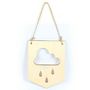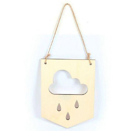 Fanion en bois nuage Décorez cette plaque de bois en forme de fanion selon vos envies, avec de la peinture, des pochoirs, des tampons, des masking tapes, afin de l'assortir à votre intérieur. Ce fanion en bois brut ajouré avec un nuage et 3 gouttes de pluie peut être suspendu au mur ou à un meuble en tant qu'objet de décoration. Dimensions : 15 x 20 x 0,5 cm.