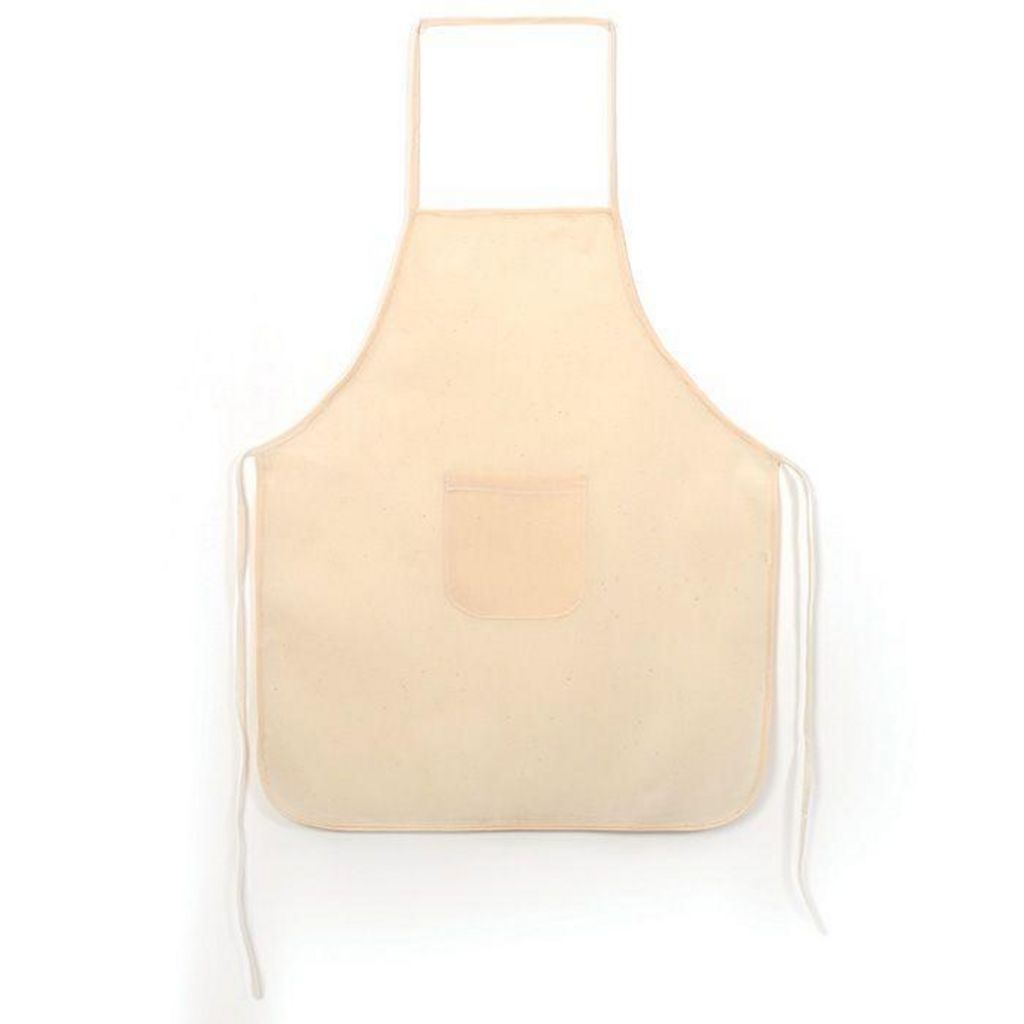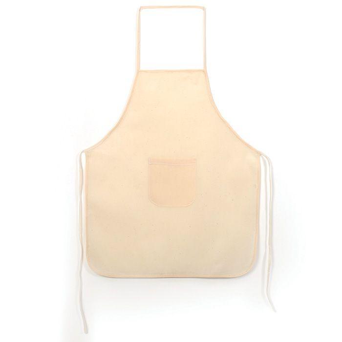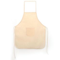 Tablier coton Ce tablier de cuisine ou de bricolage est blanc cassé. De taille enfant (49 x 60 cm), il est composé d'une ficelle tour-de-cou, une ficelle d'attache autour de la taille et d'une petite poche ventrale. Indispensable pour tous les travaux salissants, de la peinture à la céramique, des feutres à la cuisine créative !