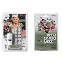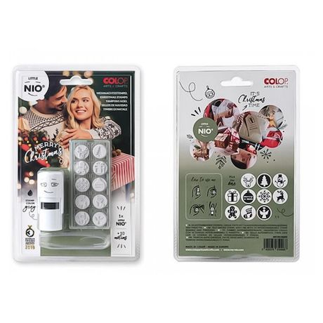 Joli tampon fantaisie Colop avec des tampons en caoutchouc interchangeables. Choisissez vos motifs préférés : Sapin, renne, paquet cadeau, bonhomme pain d'épice, boule de noël, flocon de neige, chaussette de noël, ange et bonhomme de neige. C'est parti pour décorer les étiquettes, les cartes de noël et les emballages cadeaux! Changez les caoutchoucs facilement avec la pince à épiler fournie. Tampon auto-encreur avec cartouche d'encre grise.