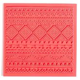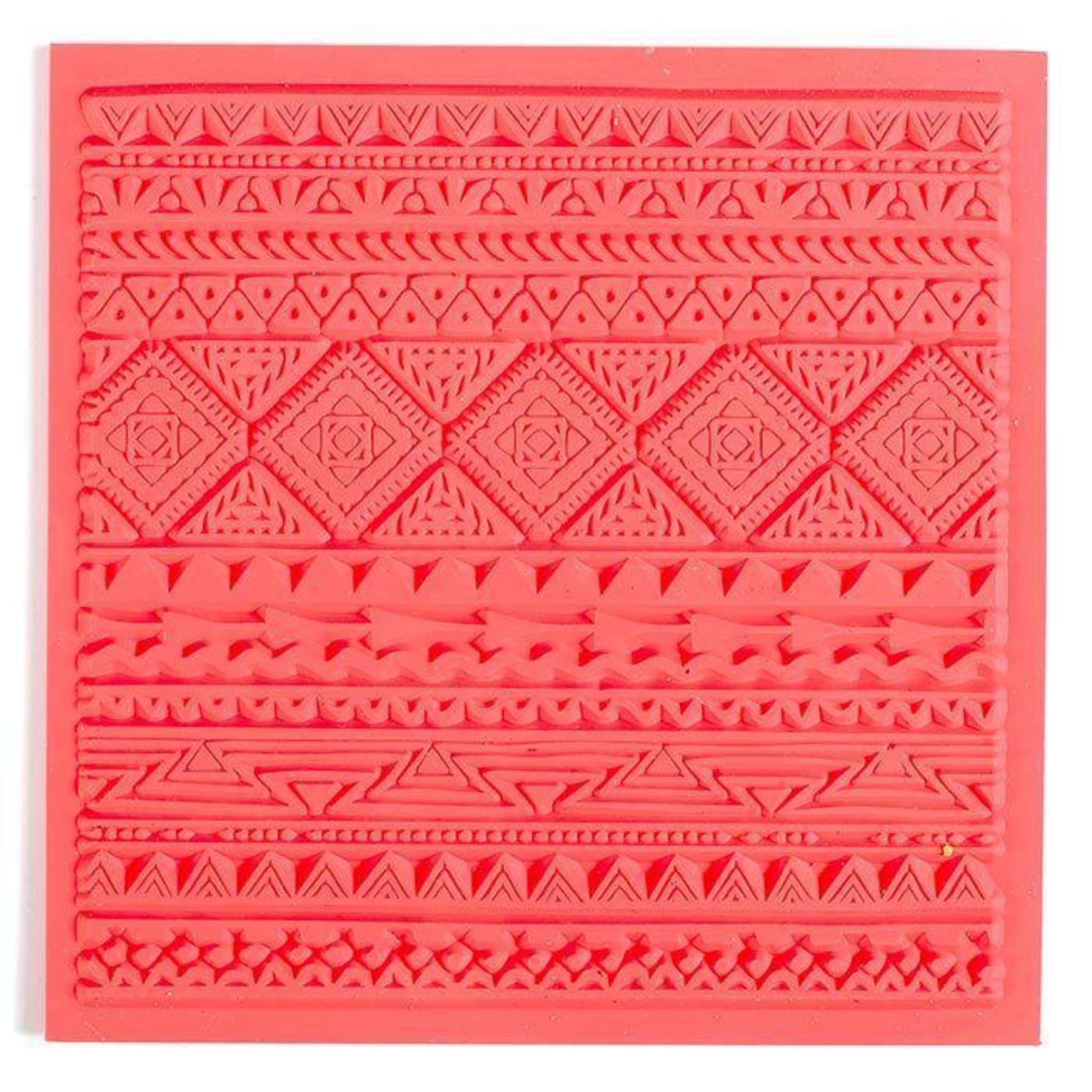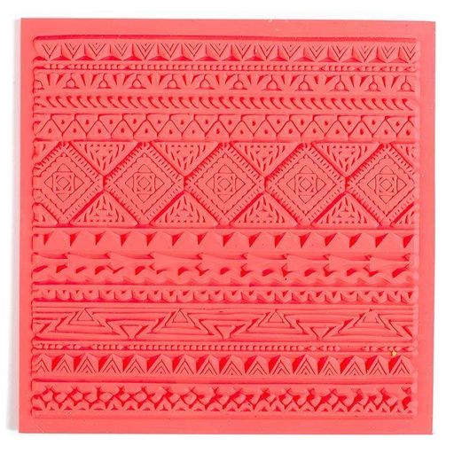 Tapis de texture pour pâte polymère - Ethnique Tapis de texture pour pâte polymère ethnique. Ce tapis de texture est parfait pour donner du relief à vos créations en pâte polymère. Il peut être utilisé avec de l'encre, pour réaliser des motifs très fins, ou de la poudre métallisée pour un effet chic. Un pas à pas technique est fourni avec le tapis de texture. Dimensions : 9 x 9 cm.
