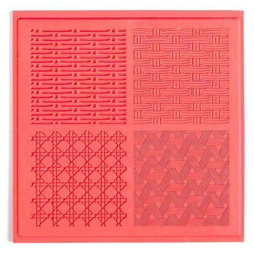 Tapis de texture pour pâte polymère - Vannerie Tapis de texture pour pâte polymère vannerie. Ce tapis de texture est parfait pour donner du relief à vos créations en pâte polymère. Il peut être utilisé avec de l'encre, pour réaliser des motifs très fins, ou de la poudre métallisée pour un effet chic. Un pas à pas technique est fourni avec le tapis de texture. Dimensions : 9 x 9 cm.