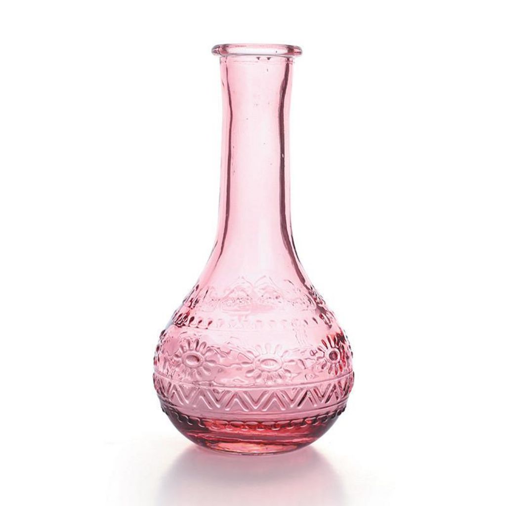 Vase Vintage en verre à reliefs - Rose - 7,5 x 15,8 cm