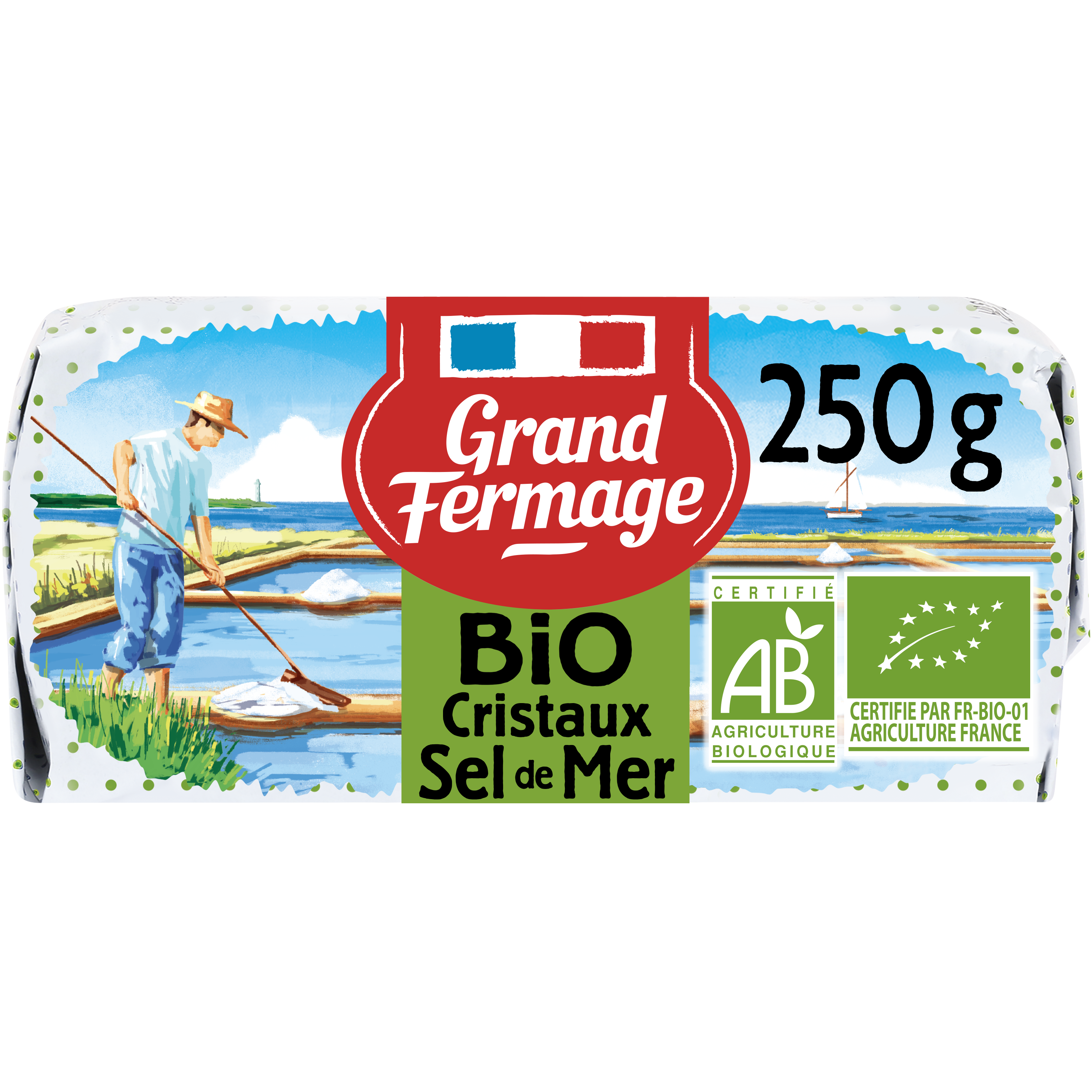 Beurre bio pasteurisé demi-sel dont la crème est issue de l'agriculture biologique et contenant des cristaux de sel de mer. Ce produit est fabriqué selon la méthode de fabrication « NIZO », procédé de barattage en continu de la crème avec injection de ferments acidifiants et aromatisants dans le beurre. Ce beurre est légèrement salé dans lequel sont ajoutés des cristaux de sel marin issus de l'île de Noirmoutier.