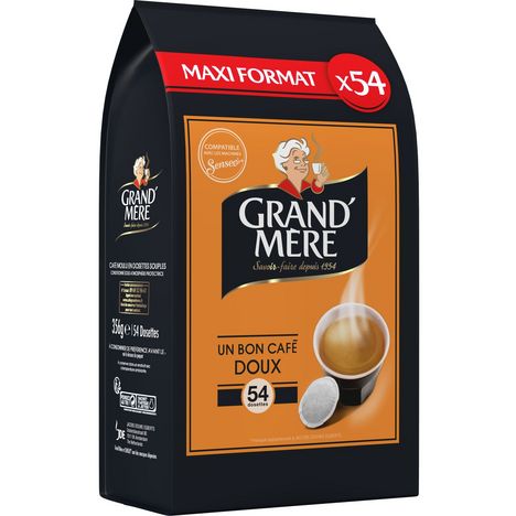 Avec les dosettes souples Grand’Mère, retrouvez des cafés aux arômes généreux et un authentique savoir-faire pour un plaisir de chaque instant. Mon Café Doux, c’est toute la saveur d’un bon café aux notes subtiles et à la mousse onctueuse. Les dosettes souples Grand’Mère sont 100% compatibles avec votre machine à dosettes souples. Grand'Mère® vous propose un café 100% certifié UTZ et des dosettes de café compostables industriellement. Ne pas jeter dans la nature. Le label « Certifié UTZ » garantit que le café contenu dans les dosettes de café Grand'Mère® a été cultivé et récolté de manière durable d’un point de vue social et environnemental. Café moulu en dosettes souples