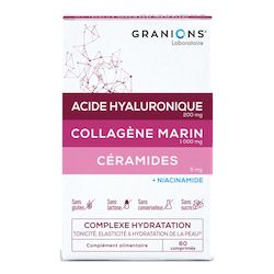 Avec l’âge, les changements hormonaux et l’hygiène de vie, la peau se modifie : les taux de collagène et d’acide hyaluronique diminuent. La densité de la peau change et son hydratation s’affaiblit. Le Laboratoire des Granions a développé une formule unique à base d’actifs incontournables pour la peau :