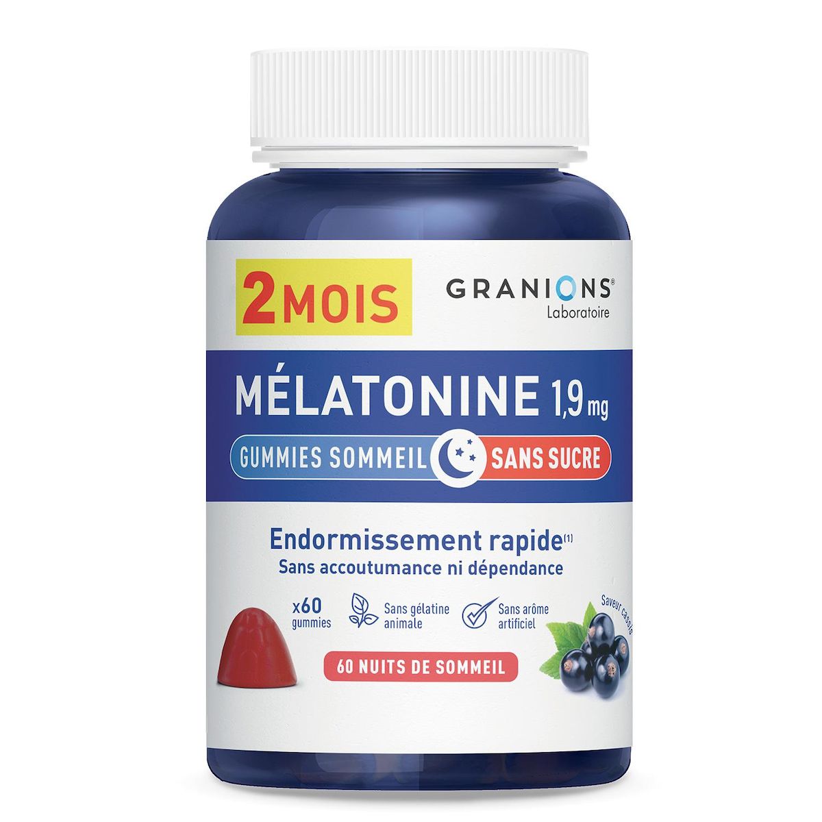 GRANIONS Sommeil Gummies 1,9 mg est un complément alimentaire à base de mélatonine, souvent utilisée comme une alternative naturelle aux somnifères pour un sommeil sans effets secondaires indésirables.