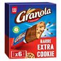 Biscuit aux pépites de chocolat (11 %) partiellement enrobé de chocolat au lait (34 %).