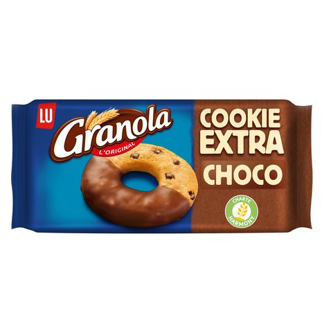 Biscuits aux pépites de chocolat (9,5 %) partiellement enrobés de chocolat au lait (26%).