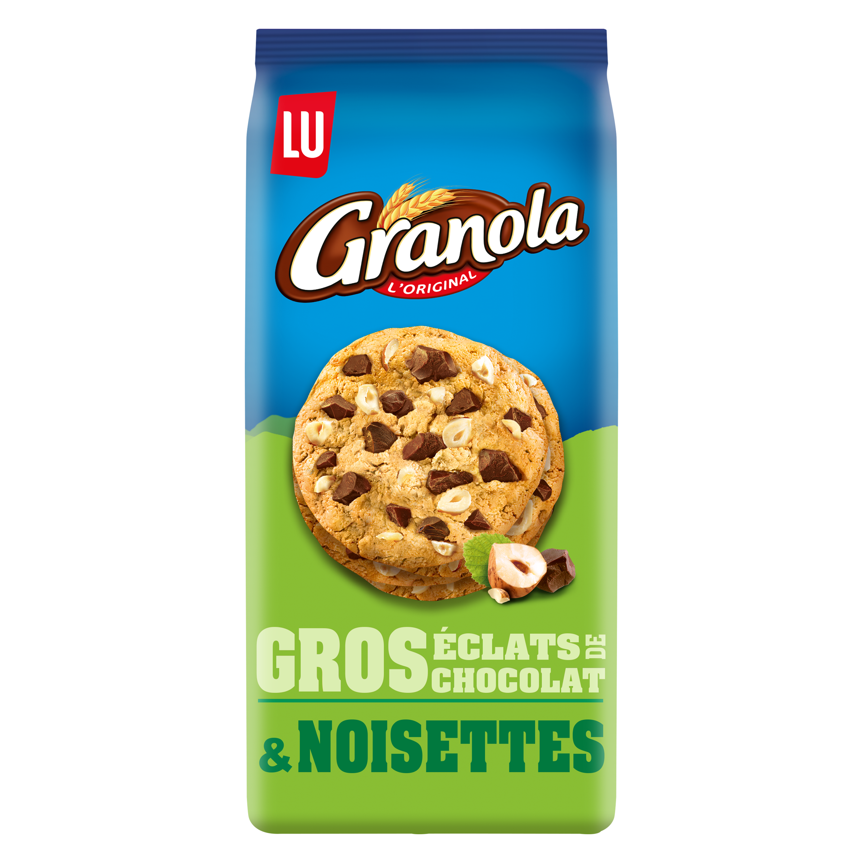 Biscuits aux morceaux de chocolat et aux noisettes, aromatisés.