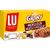 Ingrédients : Ingrédients: Muesli 27,8 % [flocons d'AVOINE 11,2 %, raisins secs 10,4 %, noix de coco 3,7 %, pétales de maïs 2,5 % (maïs 2,4 %, sucre, sel, extrait de malt d'ORGE)], farine de BLÉ 14,3 %, sucre, huile de palme, sirop de glucose, LAIT écrémé en poudre, pépites de chocolat 5,6 % [sucre, pâte de cacao, graisses végétales (palme, karité en proportions variables), dextrose, beurre de cacao, émulsifiant (lécithines de SOJA)], stabilisant (sirop de sorbitol), purée d'abricot 3,2 %, cacao maigre en poudre, poudre à lever (carbonates de sodium, diphosphates), sirop de fructose-glucose, amidon modifié, purée de pomme concentrée 0,7 % (équivalent purée de pomme 4,1 %), humectant (glycérol), fibres de BLÉ, sel, acidifiant (acide citrique), gélifiants (pectines, gomme gellane), correcteur d’acidité (citrate tricalcique), arômes. PEUT CONTENIR OEUF, FRUITS À COQUE ET SÉSAME.