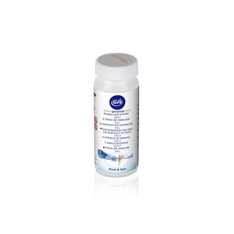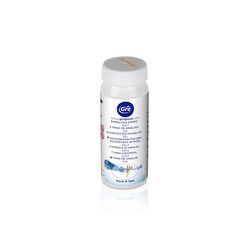 Immerger la bandelette dans l'eau et comparer le résultat avec les valeurs indiquées sur le contenant