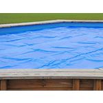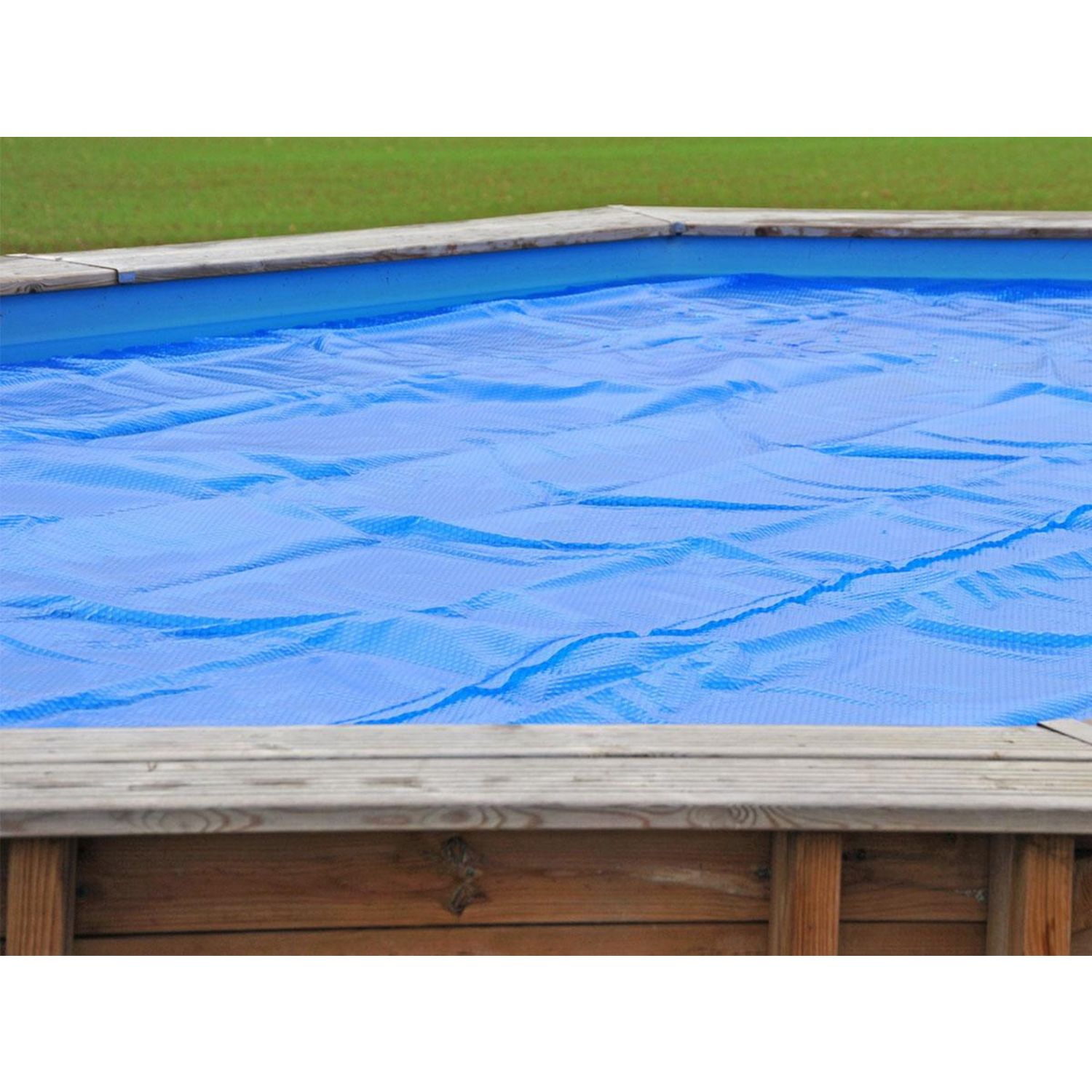Bâche à bulles pour piscine en bois octogonale - GréConvient pour la piscine Orange (Dimensions extérieures : 7,55 x 4,56 m / Dimensions intérieures : 7,05 x 4,08 m).Épaisseur 400 microns, bordée sur les 4 côtésUn côté avec œillets pour accroche sangles enrouleurColoris bleuFabrication FrançaiseCara
