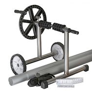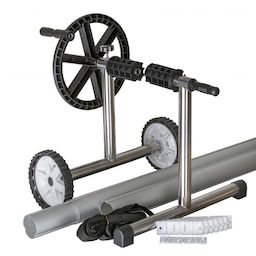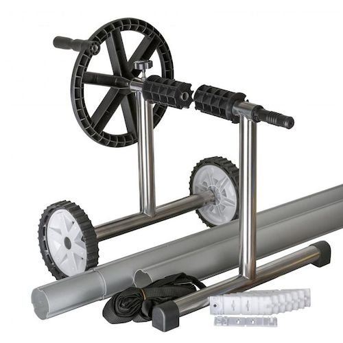 Enrouleur altique pour piscine enterrée de 5,50m.Piètement en inox en T.Tubes télescopiques en aluminium et sangles d'accrochage.Mobile, les roues permettent de déplacer aisément l'enrouleur.