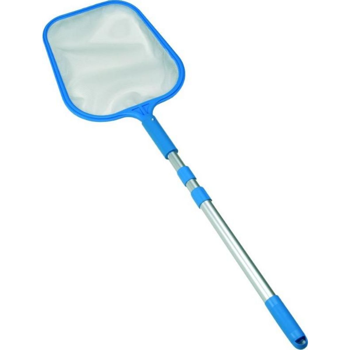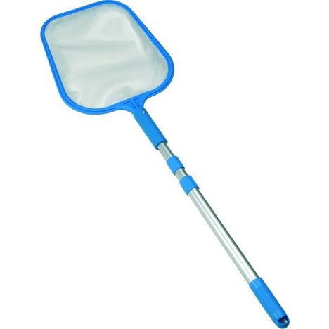 Epuisette de fond avec filet nylon de la gamme superluxe de GRE + manche aluminium télescopique. Pour le nettoyage manuel de la piscine.