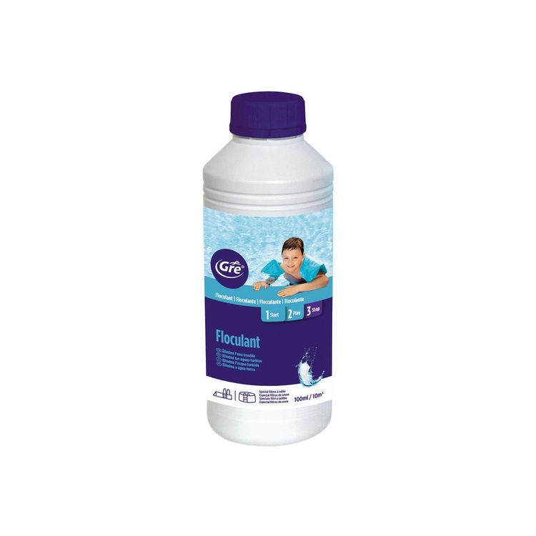 Entretien: Ajouter 5 ml de floculant liquide pour chaque 10 m³ d'eau