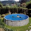 Piscine en acier avec tôle laminée à froid et traitée par galvanisation avec un revêtement façon pierre.