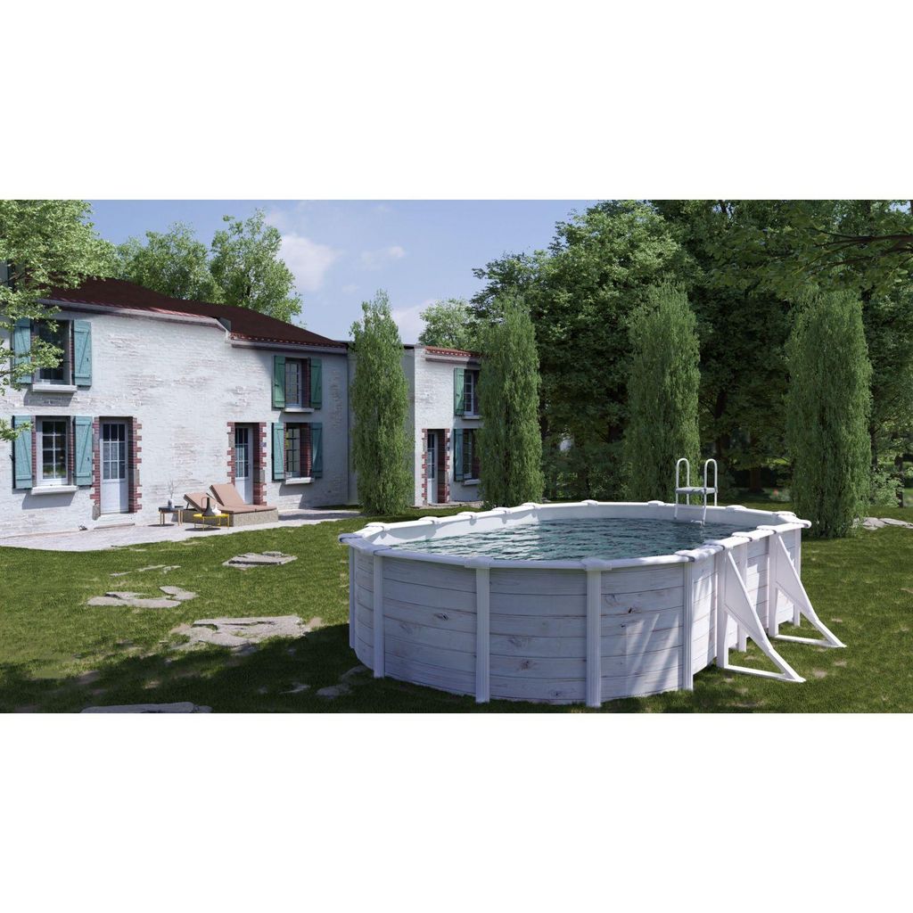 "piscine ovale en acier imitation bois nordique 6,34m x 3,99m x h:1,22 m