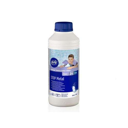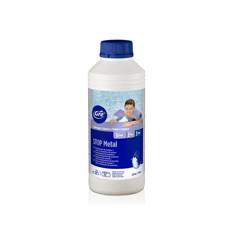 Séquestrant des sels métalliques - empêche les dépôts de tartreSpécialement pour les eaux dures : forages, puits, cours d'eau...Pour tout type de piscinesDosage: 250 ml / 10 m3Dissoudre la dose correcte de produit dans un récipient et la répartir uniformément dans l'eau. La filtration doit être en m