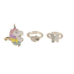 Bagues Boutique Butterfly and Unicorn Rings, 3 Pcs