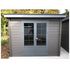 Cet abri de jardin contemporain en composite constitue une réelle dépendance dans le fond de votre jardin. Il vous offre un espace clos et discret de superficie intéressante qui est constitué d'un abri en composite fermé par une double porte surmonté d'un toit plat lui donnant un look plus contemporain. La double porte est battante est vitrée. Elle se ferme à l'aide d'une serrure à barillet.
